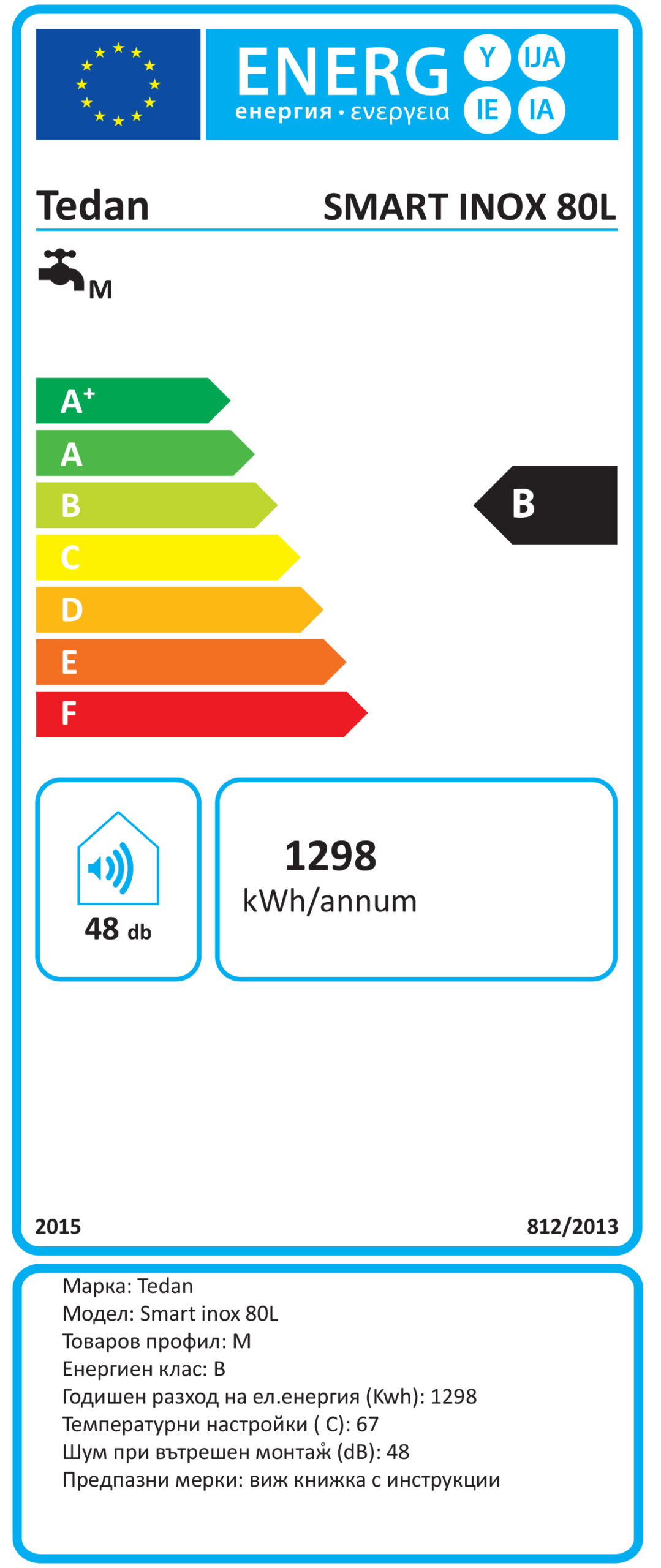 Бойлер TEDAN VF SMART INOX 80л., 3kW