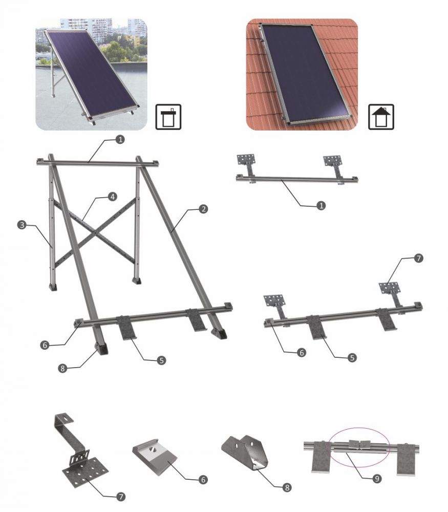 Стойка за 1 слънчев панел-колектор Sunsystem, за равен покрив, алуминиева