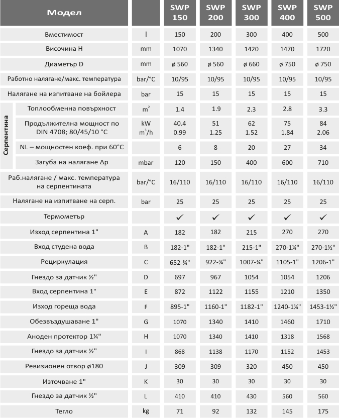 Вход студена вода B, mm G1″/182 G1″/182 G1″/215 G1¼“/270 G1½“/270