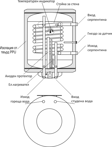 | Серпентина | Топлообменна повърхност | m2 | 0.4 | 0.53 |