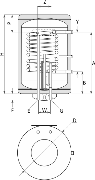 Бойлер със серпентина Sunsystem 80л., 2kW, емайлиран, малък диаметър