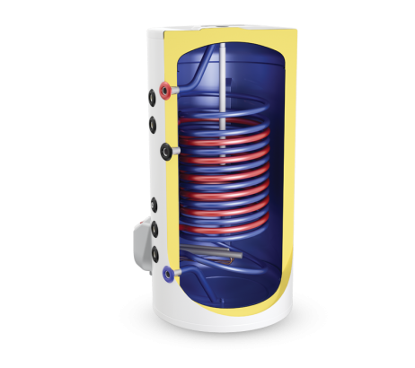- С две серпентини за съчетаване на два топлоизточника. Серпентините са разположение в целия обем на бойлера за максимална ефективност при згряване на водата, независимо от сезона. При подходящо съчетание на режимите на работа на двете серпентини, през цялата година може да се загрява вода без използването на електрическа енергия