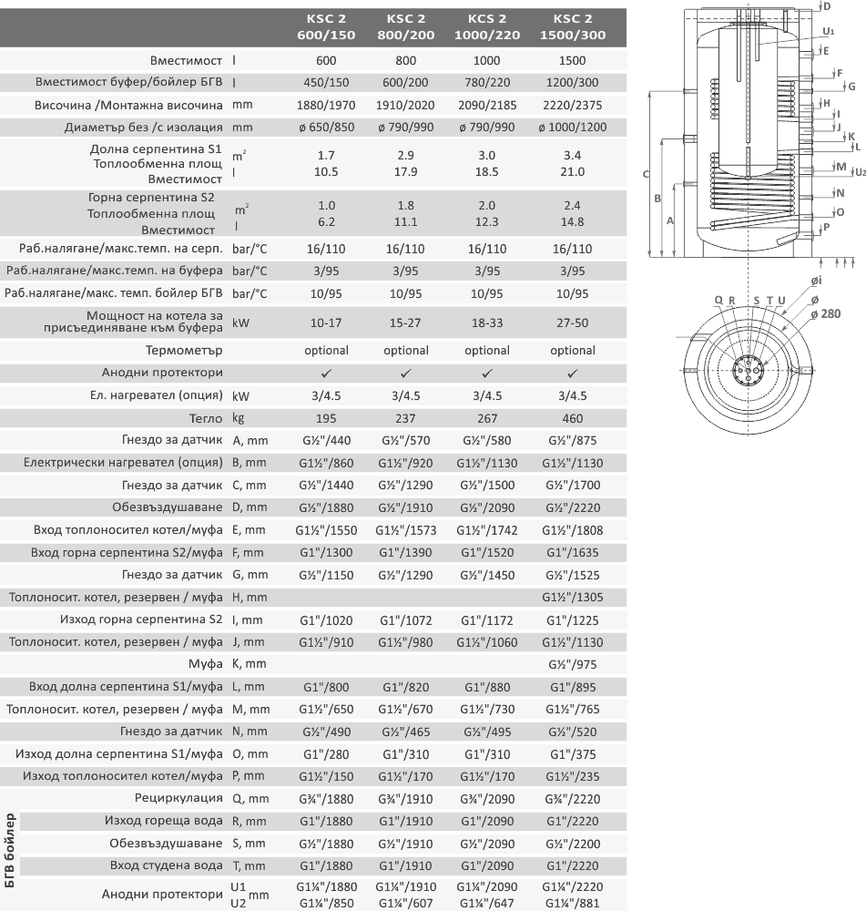 - Антикорозионна защита на водосъдържателя за БГВ от титаниев емайл и два анодни протектора