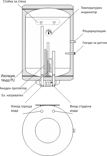 | Вход студена вода | G | R½“ (65) | R½“ (65) | R½“ (65) | R½“ (65) | R¾” 150 (65) |