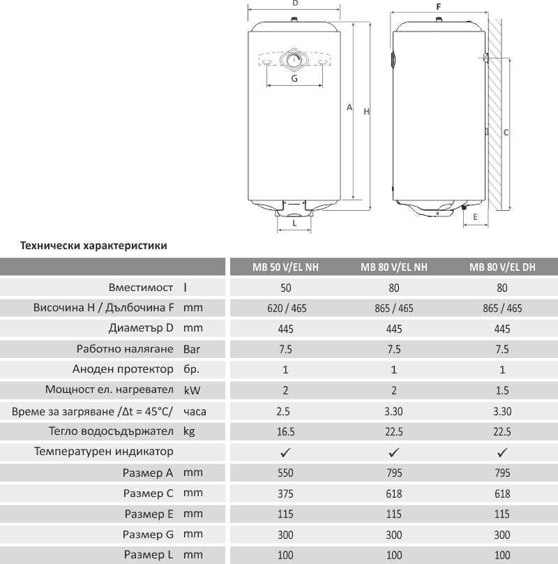 Бойлер Sunsystem 80л., 2kW, емайлиран