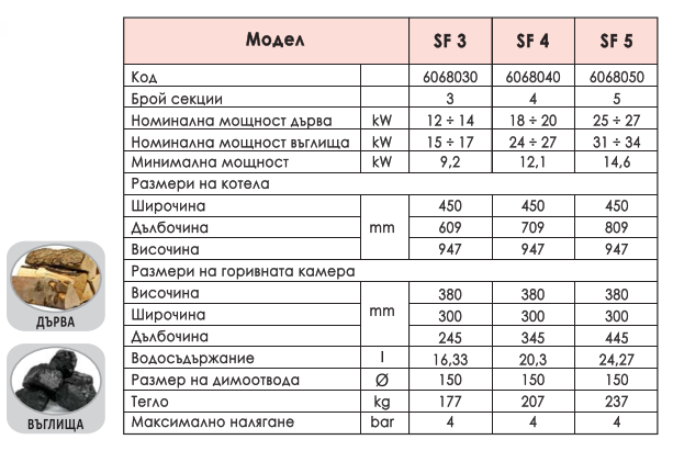 Мощност котел Solitech Plus: 18 kW ÷ 27 kW - 4 секции