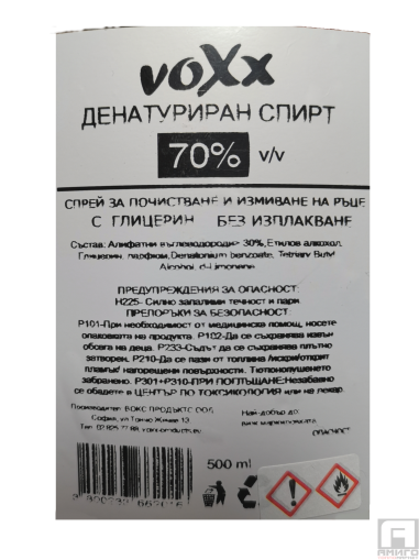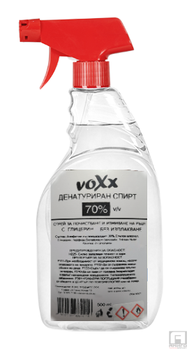 Спрей за почистване и измиване на ръце и повърхности Voxx 70% денатуриран спирт – 500ml