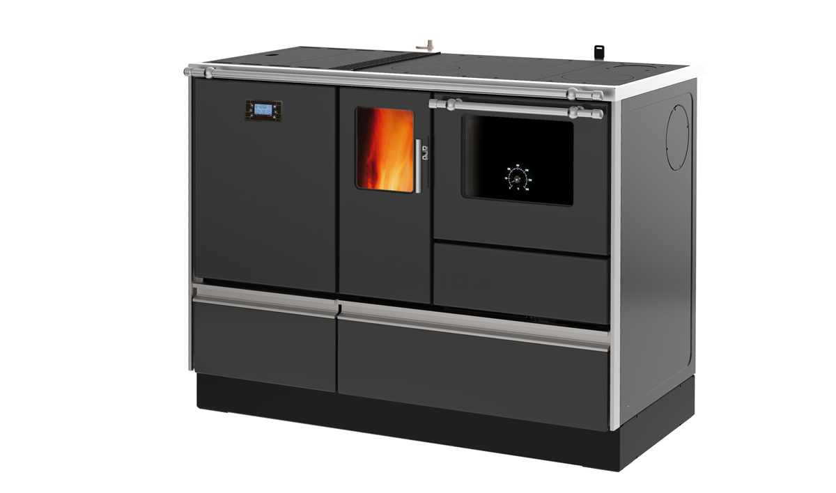 Многофункционална готварска печка на пелети за етажно отопление с изключителен дизайн и качество.