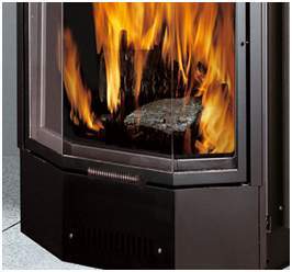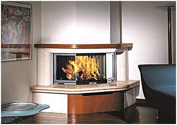 Камера за вграждане на дърва с корпус от стомана, горивна камера и фронтална част от чугун и керамично стъкло.