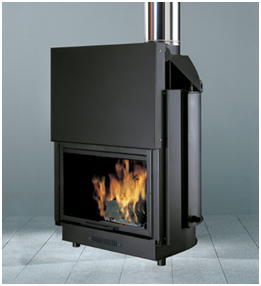 Камера за вграждане на дърва с корпус от стомана, горивна камера и фронтална част от чугун и керамично стъкло.