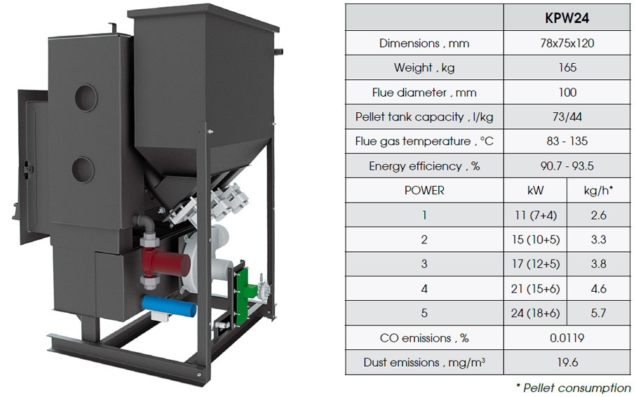 Камера за вграждане на пелети с водна риза Прити KPW 24kW
