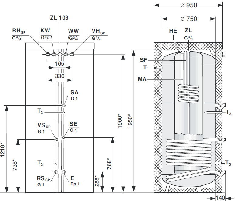 WST SP750-1solar e комбиниран бойлер за битова гореща вода 195л. и подпомагане на отоплението 546л.