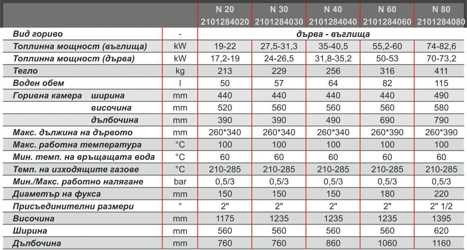 | Мощност котел BiSolid N | Мощност 80 kW |