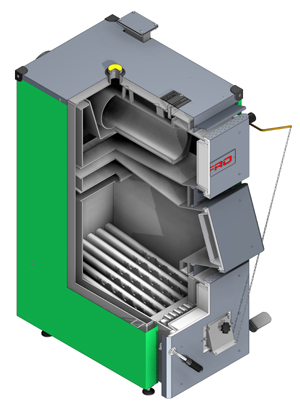 Котела е проектиран за изгаряне на твърдо гориво и по специално за дървени трупи . По – голямата горивна камера позволява по дълъг процес на горене с едно зареждане. Котлите работят на естествена тяга и не се нуждаят елекрозахранване. Въздуха се регулира с помощта на клапа , която се регулира ръчно или чрез регулатор на темп. на димните газове. Котлите са фабрично подготвени за монтаж на вентилатор. Топлообменникът на котела е изработен от специална сертифицирана стомана .