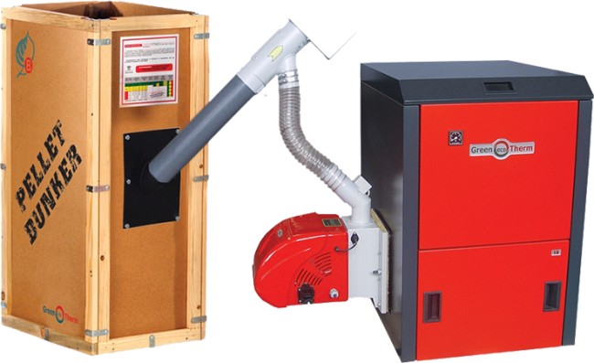 - Автоматизирана пелетна горелка Erato GP , горивоподаващ шнек, 80 литра дървен бункер за пелети, комплект инстументи за почистване