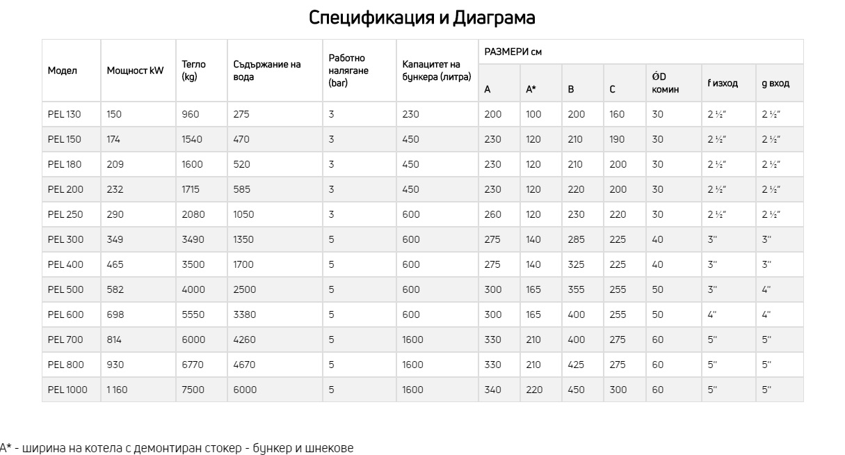 | Мощност пелетен котел Kozlusan (Thermokoz) PEL 150-1000 | PEL1000 – 1160kW |