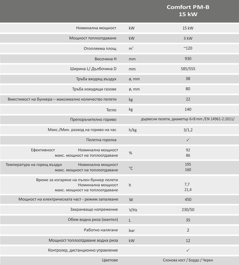 Пелетна камина BURNiT Comfort PM-B 15 kW е с компактни размери, лесен монтаж и експлоатация. Могат да се инсталират на предпазени от замръзване балкони и пространства.
