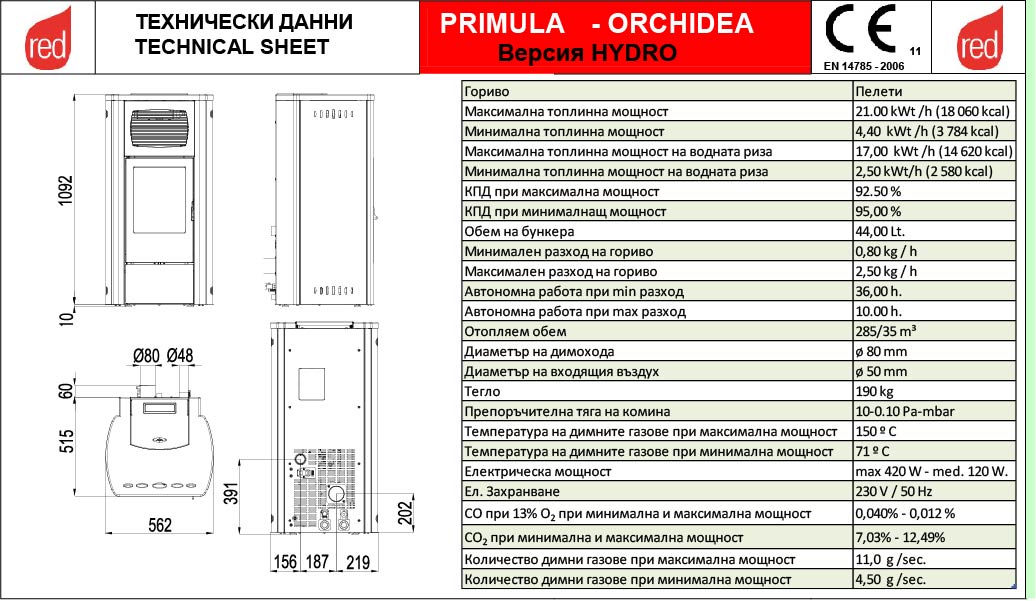 Пелетна камина с водна риза Orhidea HYDRO 21kW