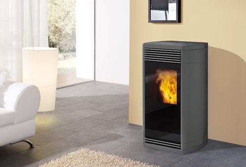 Пелетна печка Flexa New e с корпус от листова стомана, горивната камера е от чугун и има керамично стъкло. Отопляема площ-210 м³
