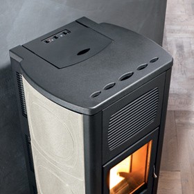 Orhidea е топловъздушна пелетна камина предназначена за отопление на едно помещение. Камината има цветни метални.